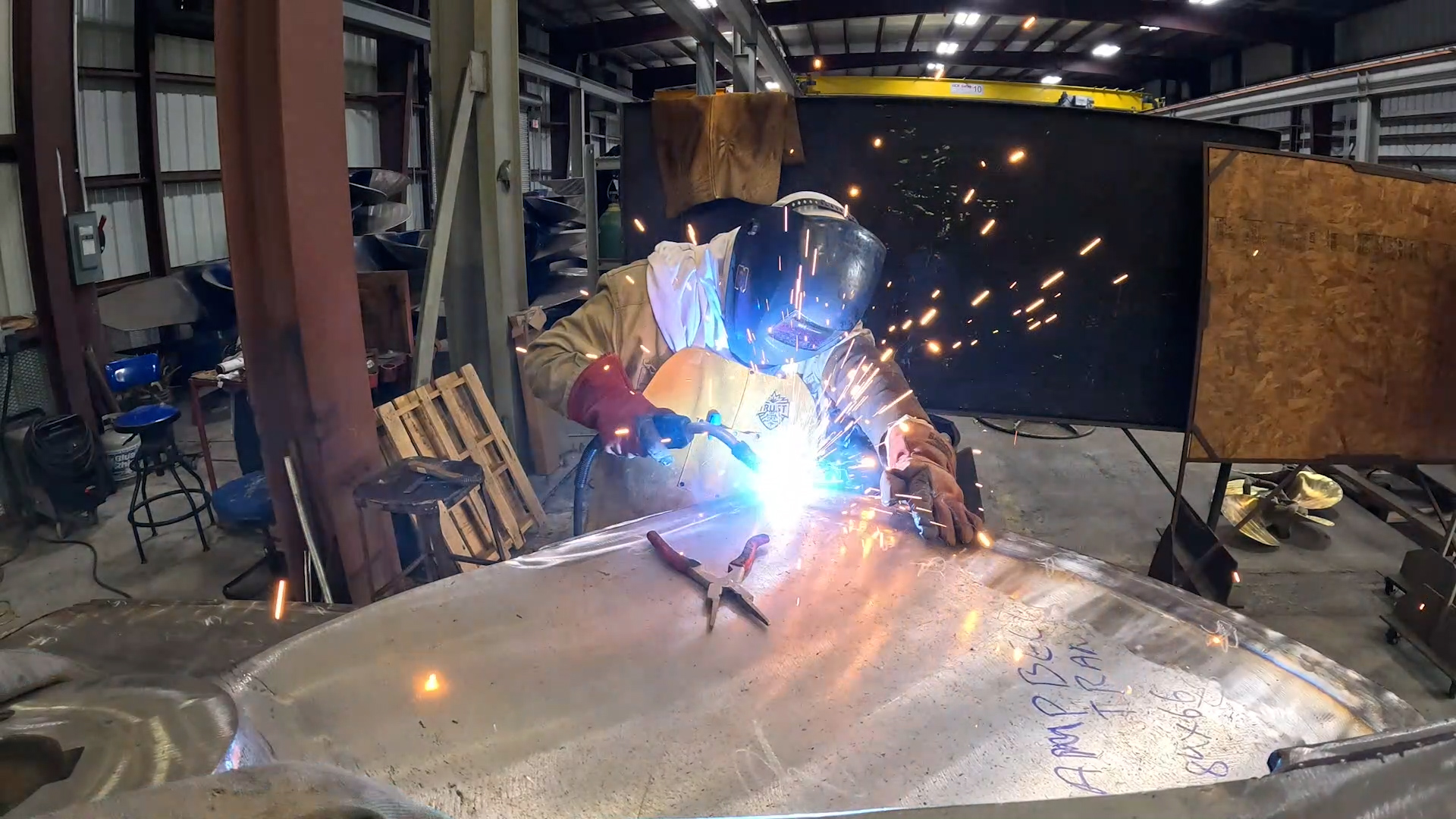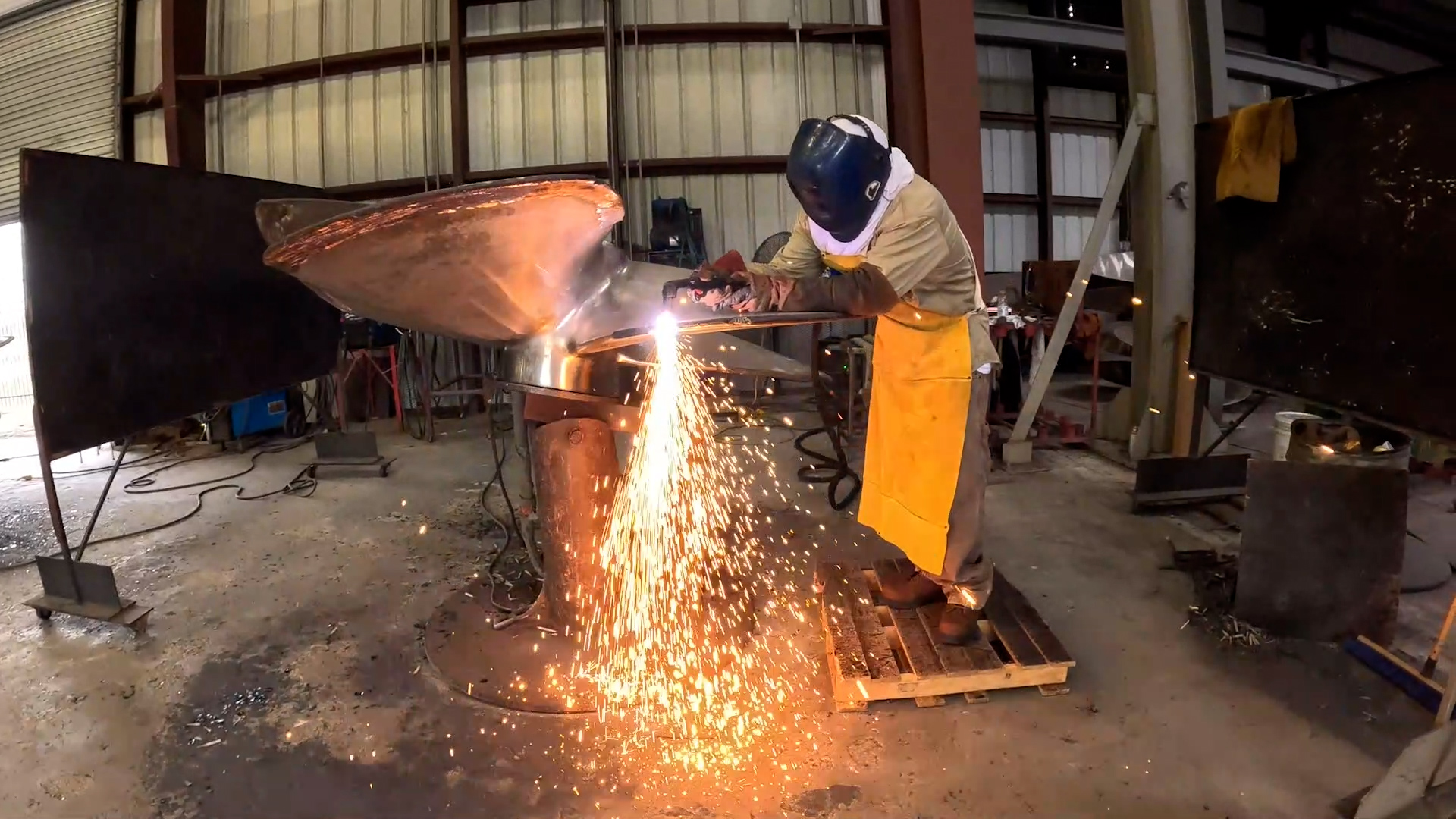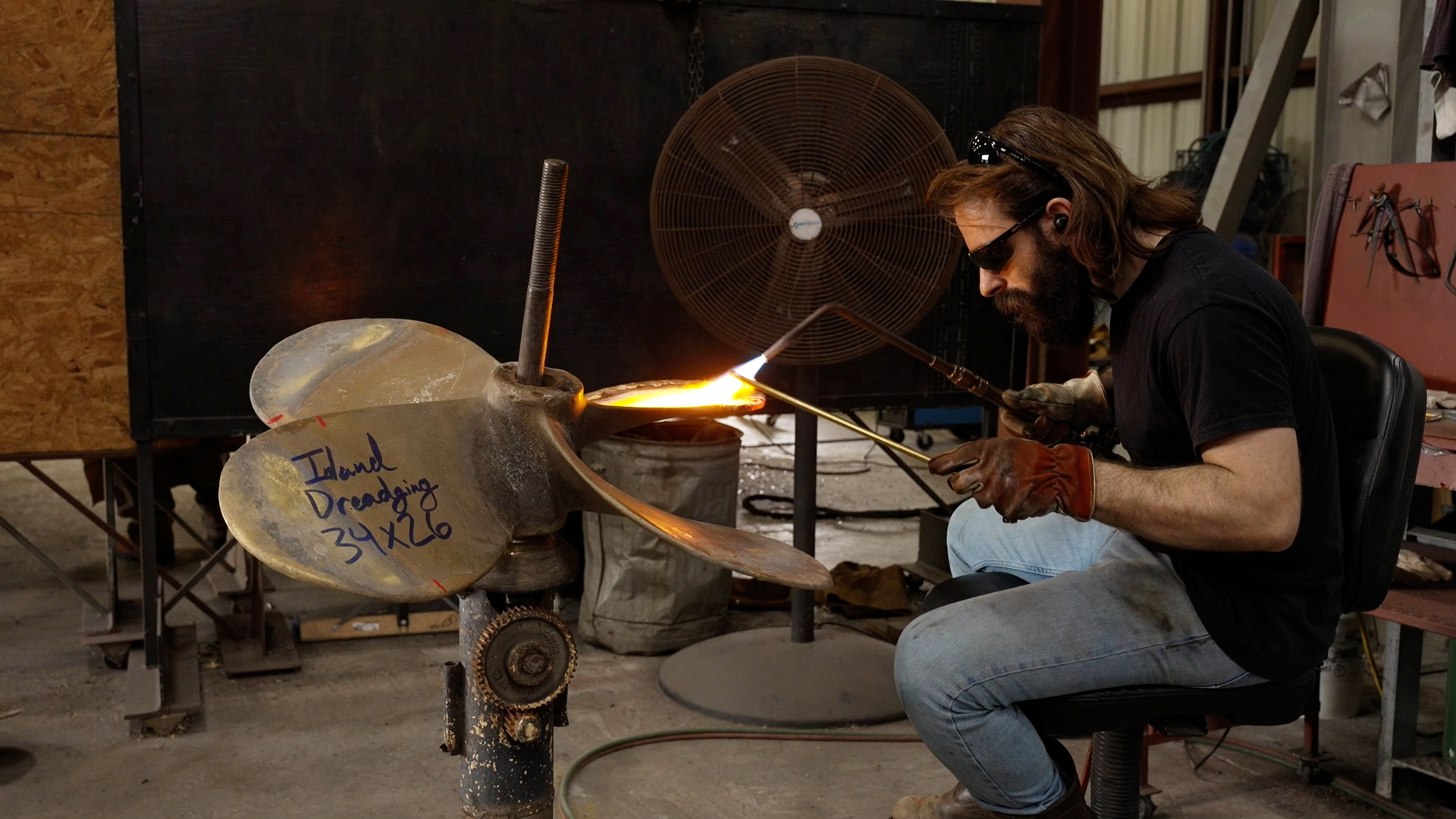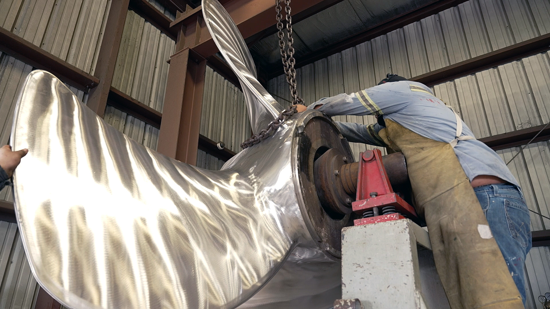 The propeller repair shop handles commercial propellers from 40” to 148” diameter, up to 5 tons.